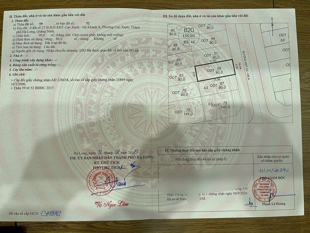 + bán đất lô B20 ô 90m2, Cao Xanh , Hạ Long , Quảng Ninh
