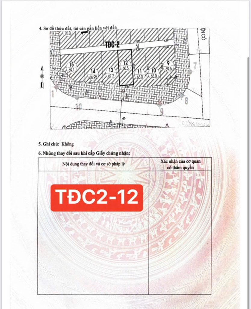+ Lô TĐC2 ô 12 , dt 60,5m2, MT 5m , hướng N , Sđcc , ngay sau đường bao biển , gần ngã 4 nên giao thông đi lại thuận tiện , đỗ xe thoải mái